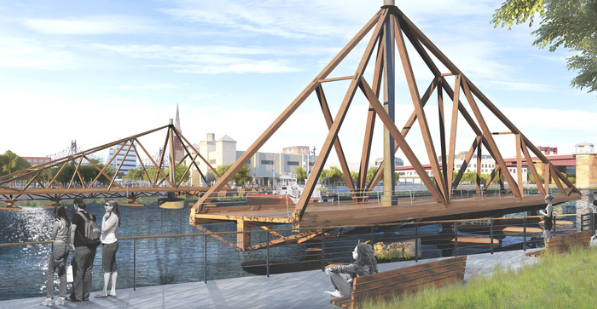 懸浮橋?qū)?huì)為行人和自行車使用者提供綠點(diǎn)和長島市的連接路徑,并活躍兩邊街區(qū)親水的公共空間。
